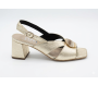 Sandalia de mujer en piel metal platino, tacón grueso de 6 cm de altura, ajustable con hebilla, marca PLUMERS MENORCA modelo 3119.
