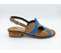Sandalias Plumers Menorca 3053 en ante color cuero combinado con ante azul, tacón bajo de 2 cm. forrado al tono, con planta forrada entera de piel incorporando new-gel para mayor confort,