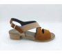 Sandalias de ante color brandy combinada con color arena, de tacón bajo, con piso flexible de caucho natural.