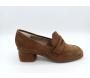Zapato de mujer con antifaz, afelpado en color marrón castaño, tacón grueso de 4 cm de altura forrado al tono, marca PLUMERS MENORCA modelo 4143.
