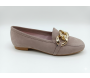 Bailarina de mujer en ante color piedra, adorno estribo dorado, tacón bajo de 2 cm, marca Euforia Bailainas modelo Lorena.