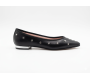 Bailarina de mujer con punta fina, en piel negro con adorno de tachas en forma de estrella, tacón bajo forrado en plata, marca EUFORIA modelo 563.