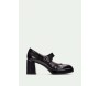 Zapato con trabilla en empeine "merceditas" piso bloque con detalle de botón con logo. Plataforma de 2 cm y tacón cómodo de 7 cm. Elaborado en piel charol. Forro interior de origen no animal, 100% transpirable y termorregulador. Tecnología Triflow: triple almohadillado en la zona de la pisada que absorbe los impactos y aporta un efecto acolchado al caminar. Altura: 7 cm.