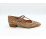 Zapato con forma T ajustable con hebilla, color almendra, tacón bajo de 2,5 cm de altura, fabricado con rafia combinado con piel , marca HISPANITAS modelo AZUCENA 264625.