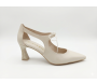 Zapato de vestir para mujer en piel color crema, tacón efecto madera de 6,5 cm de altura, ajustable con cordón, marca HISPANITAS modelo Giorgia 264802.